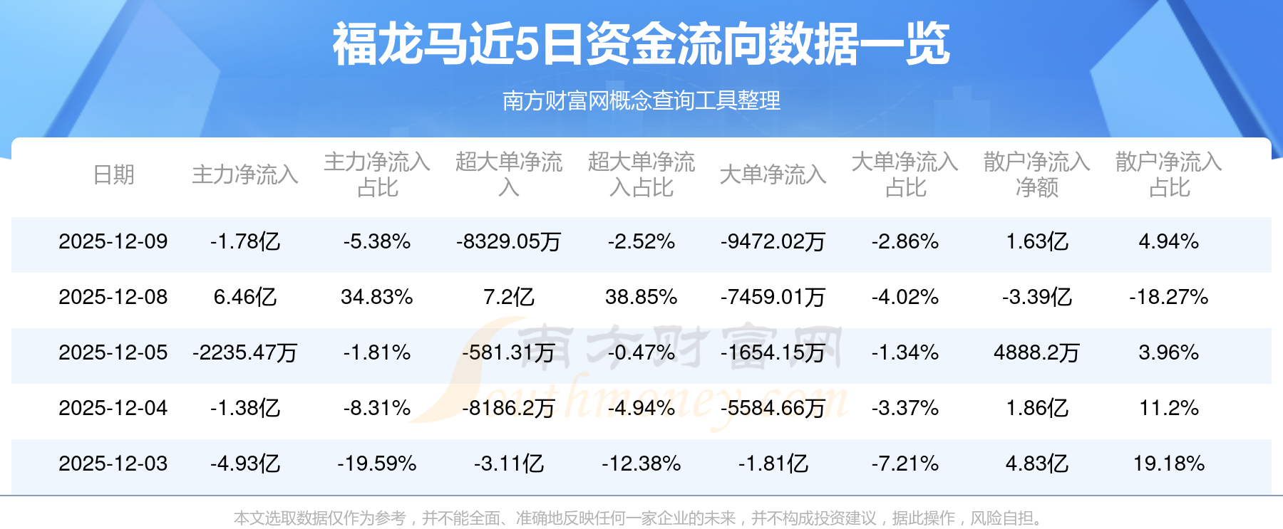 12月9日消息,福龍馬資金凈流出1.78億元,超大單資金凈流出8329.05萬元,換手率28.38%,成交金額33.07億元。