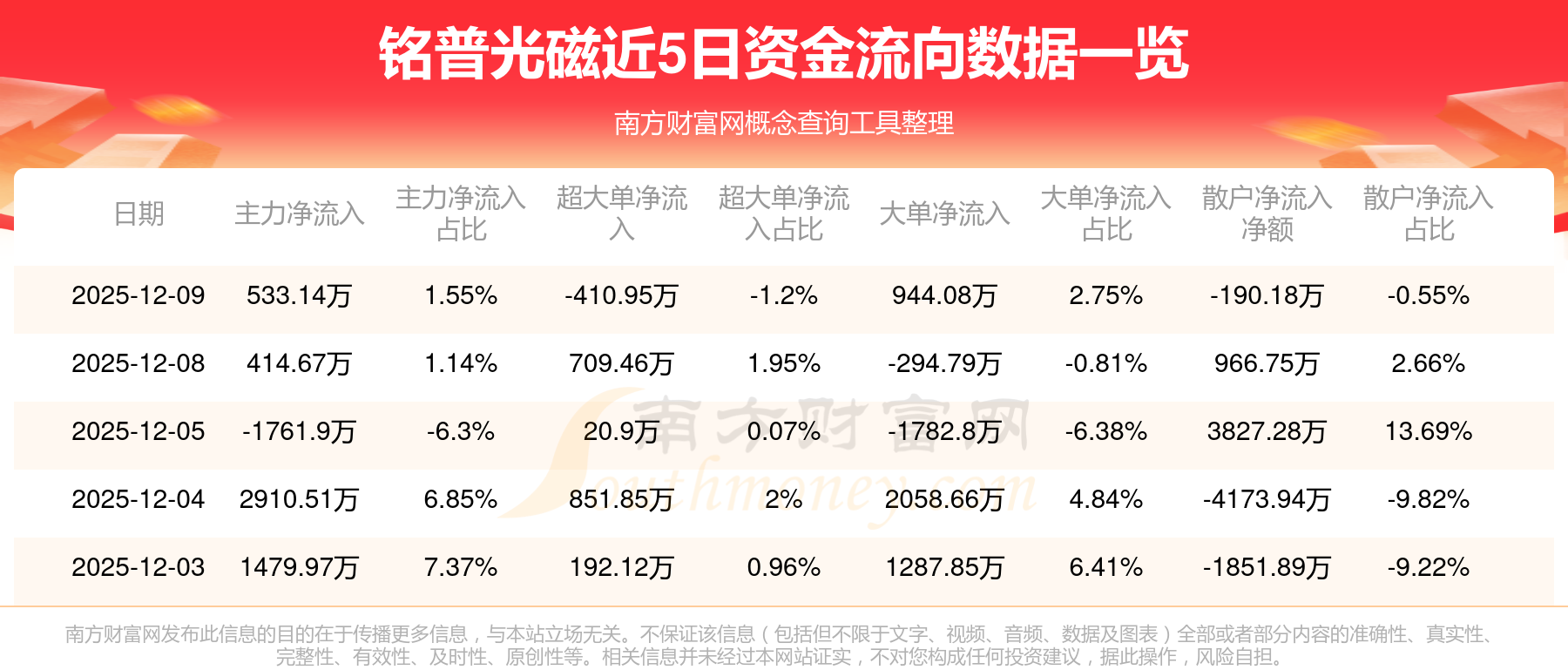 近5日資金流向一覽見下表: