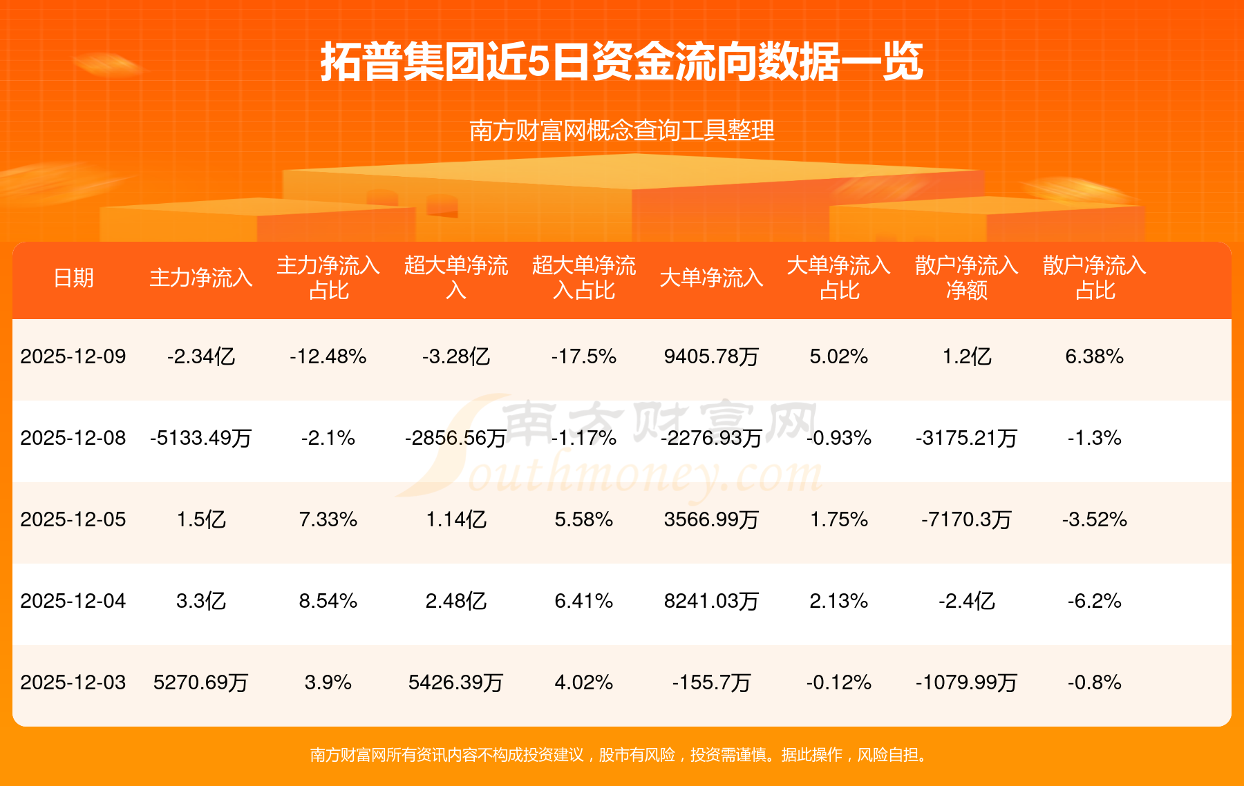12月9日消息,拓普集團(tuán)資金凈流出2.34億元,超大單資金凈流出3.28億元,換手率1.6%,成交金額18.74億元。