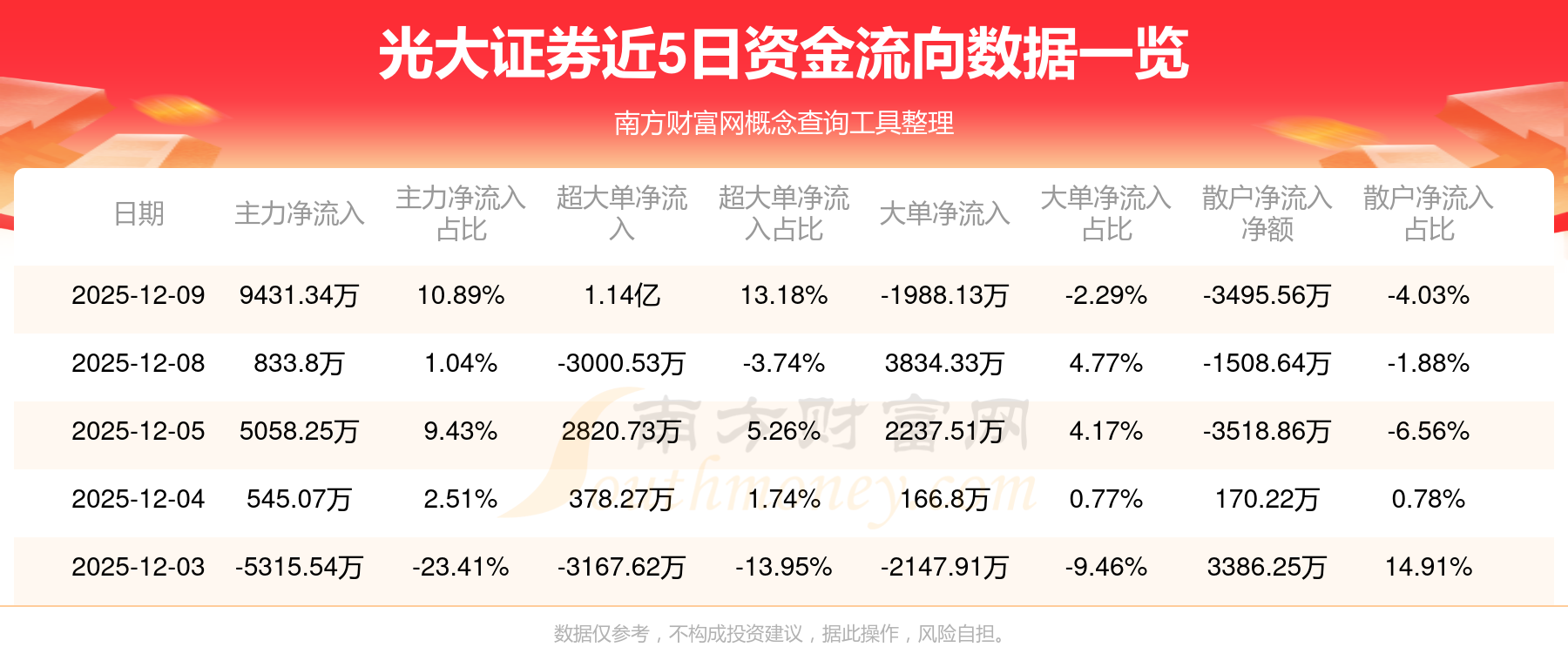 近5日資金流向一覽見下表: