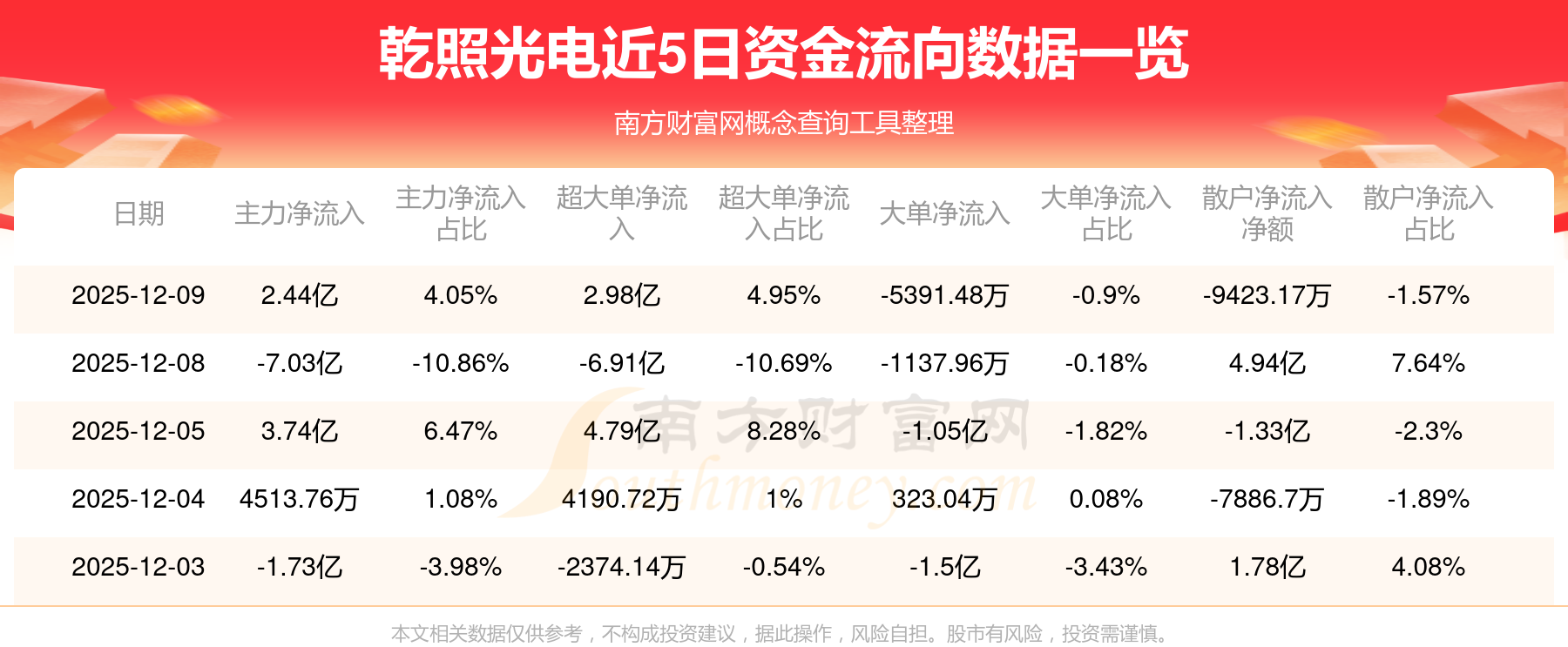 近5日資金流向一覽見下表: