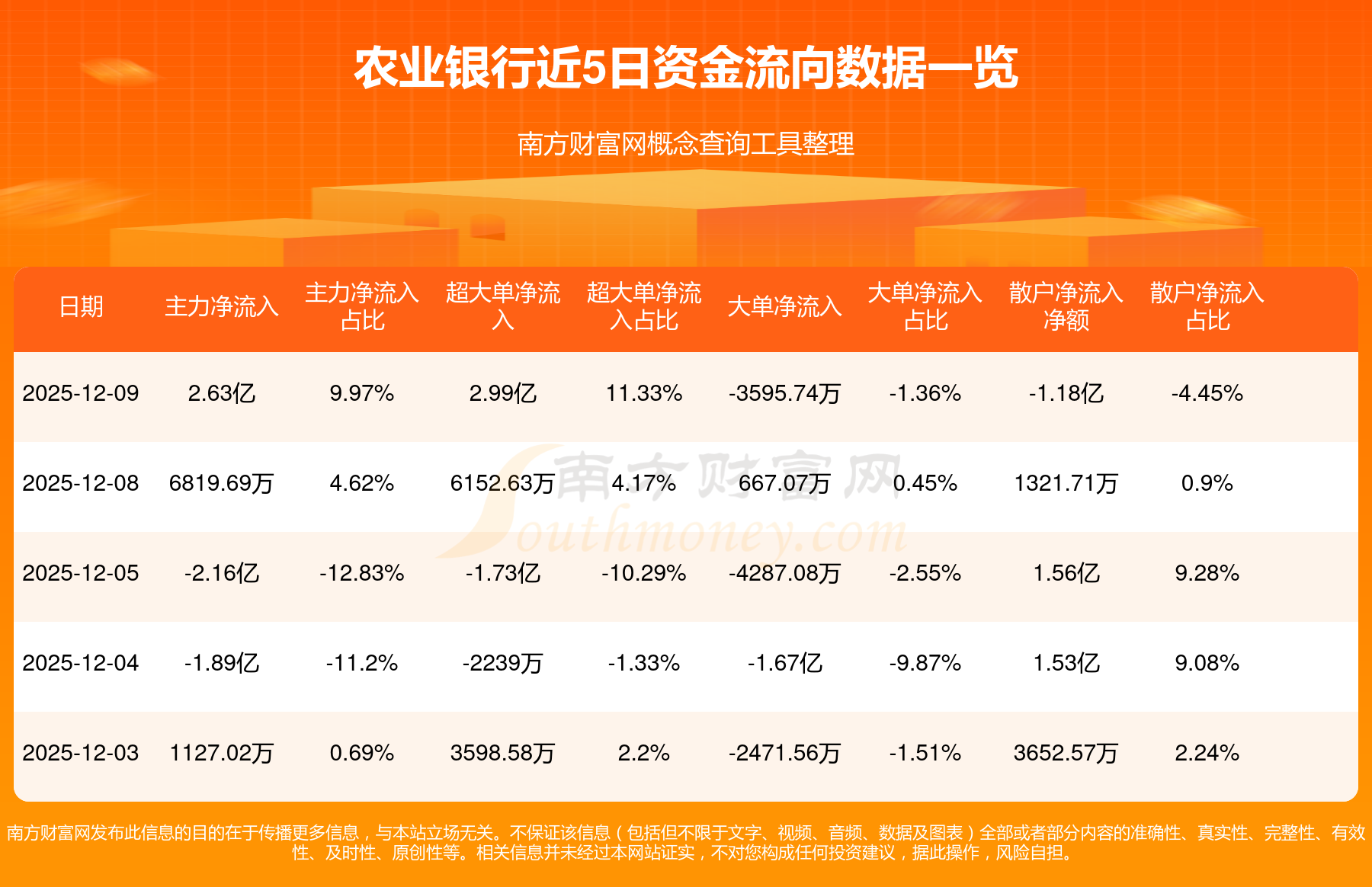 12月9日該股主力資金凈流入2.63億元,超大單資金凈流入2.99億元,大單資金凈流出3595.74萬元,中單資金凈流出1.46億元,散戶資金凈流出1.18億元。