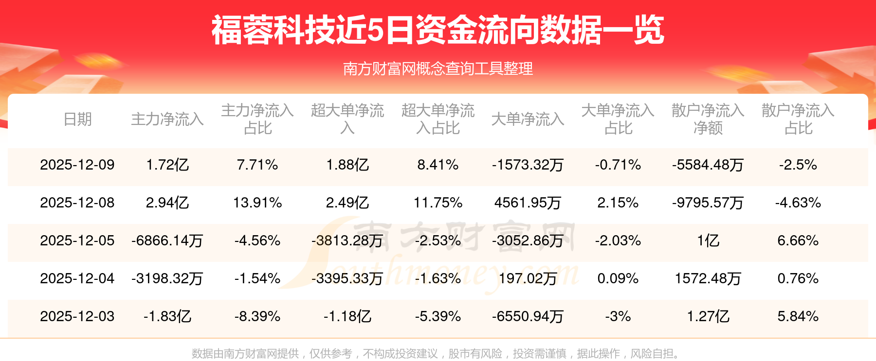 資金流向數(shù)據(jù)方面,12月9日主力資金凈流流入1.72億元,超大單資金凈流入1.88億元,大單資金凈流出1573.32萬元,散戶資金凈流出5584.48萬元。