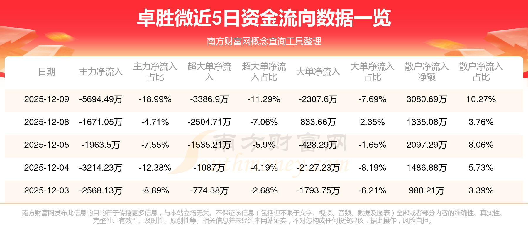 近5日資金流向一覽見下表: