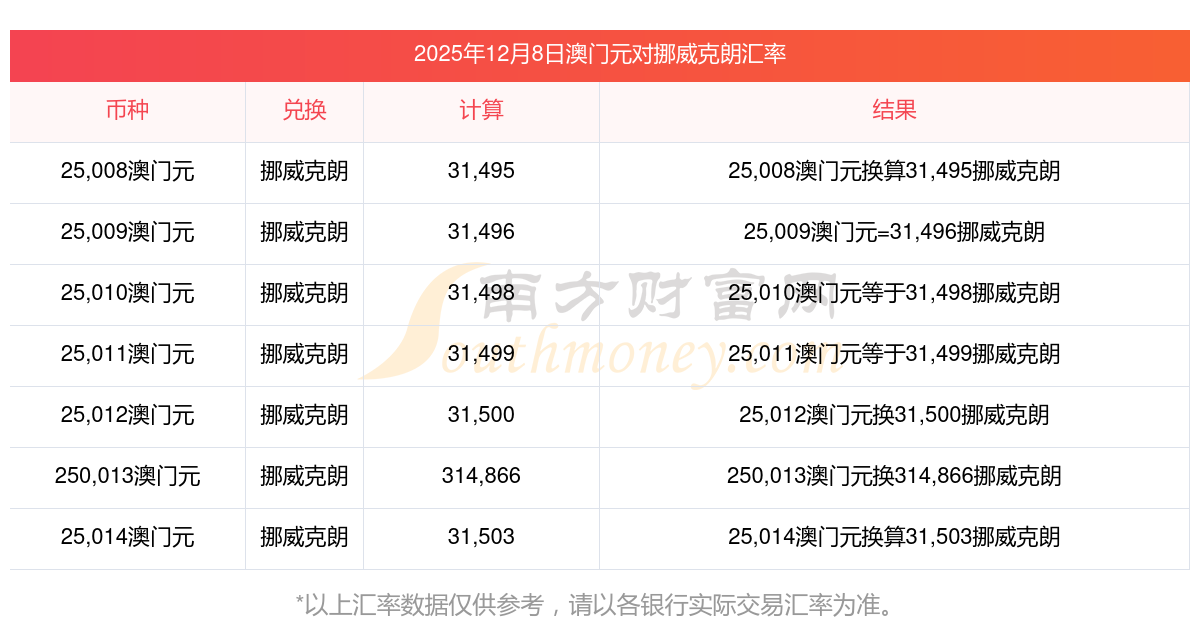 南方財富網(wǎng)為您提供澳門元對挪威克朗匯率最新價格詳情。