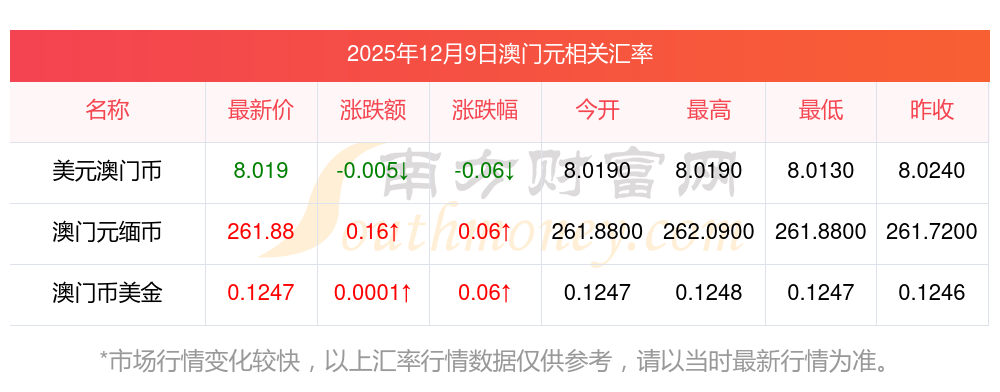 根據(jù)2025年12月9日匯率,澳門元兌換緬幣匯率最新價(jià)261.880000,今開價(jià)261.8800,昨收價(jià)261.7200,最高價(jià)262.0900,最低價(jià)261.8800。