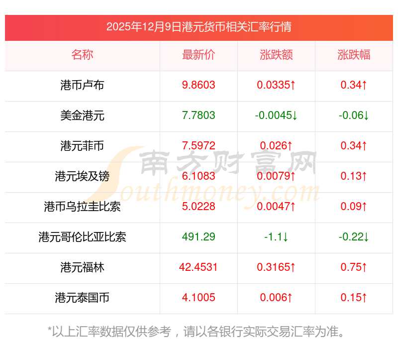 2025年12月9日港元相關(guān)匯率查詢