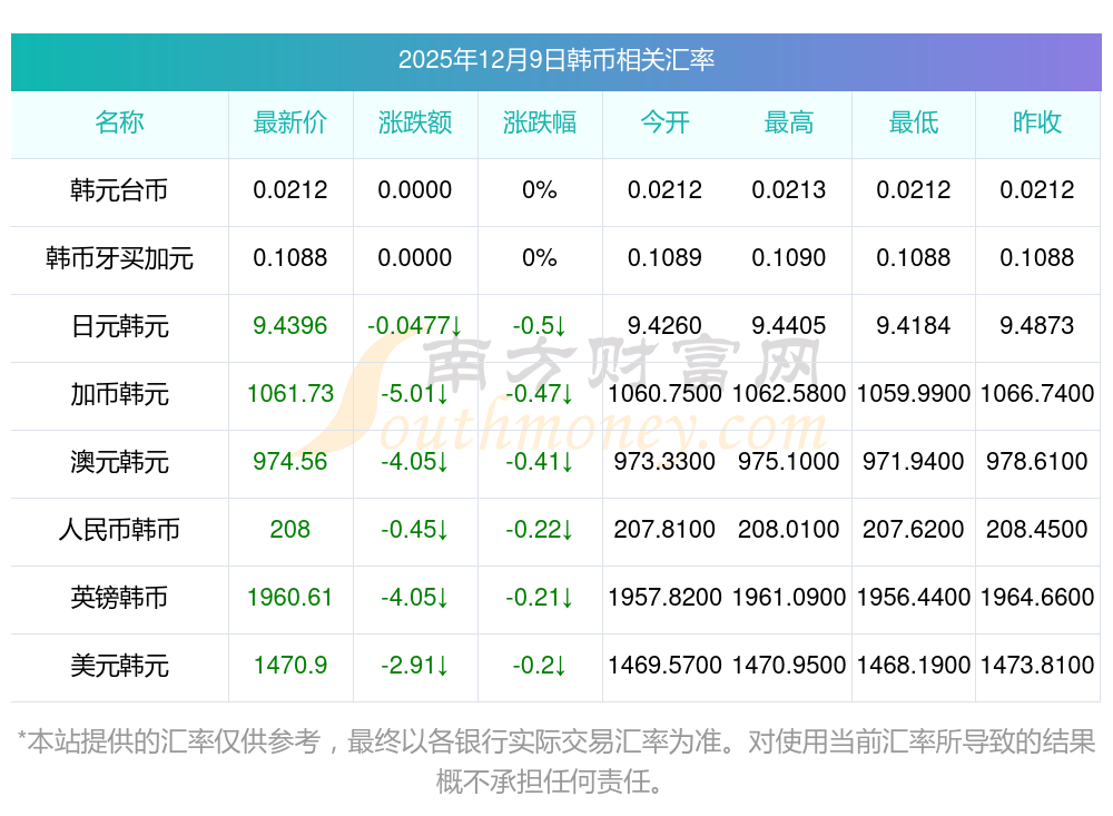 2025年12月9日韓幣相關(guān)匯率查詢