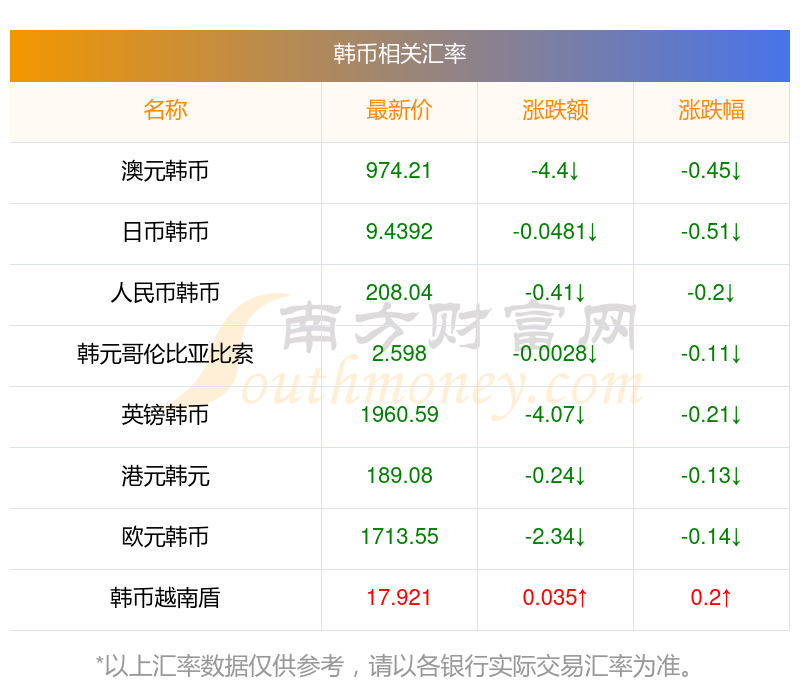 南方財富網為您提供韓幣對秘魯新索爾匯率最新價格詳情。