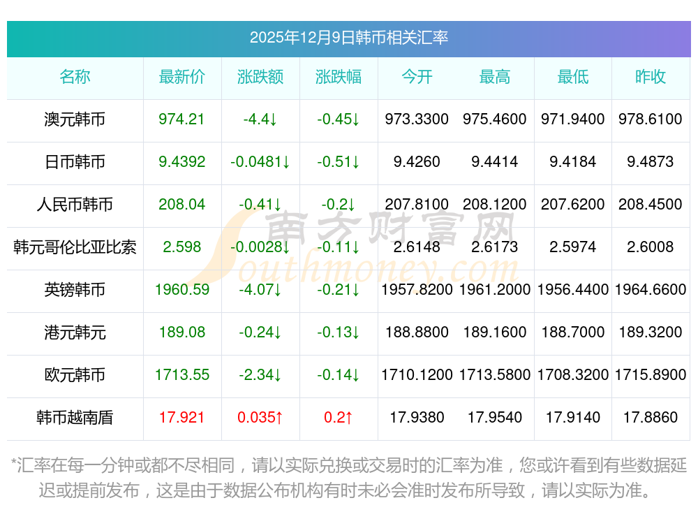 根據(jù)2025年12月9日匯率計(jì)算,KRW兌換NZD匯率最新價(jià)0.001176,今開(kāi)價(jià)0.0012,昨收價(jià)0.0012,最高價(jià)0.0012,最低價(jià)0.0012。