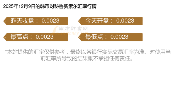 韓幣對(duì)秘魯新索爾匯率比例多少?2025/12/9