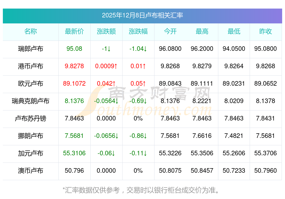 根據(jù)2025年12月8日匯率,盧布兌換緬元匯率最新價27.451000,今開價0.0000,昨收價27.4510,最高價0.0000,最低價0.0000。