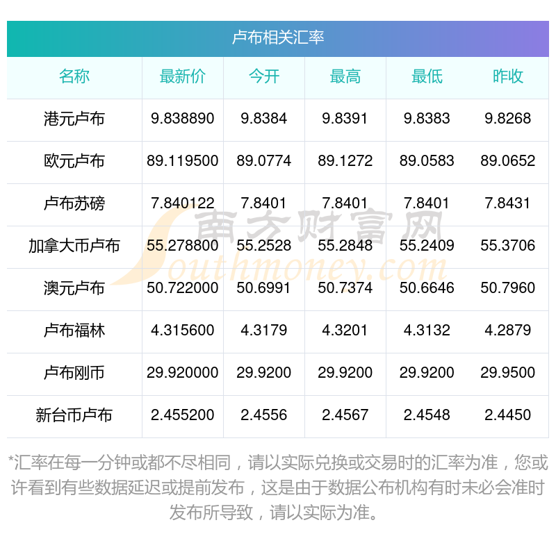 南方財富網為您提供盧布對牙買加元匯率最新價格詳情。