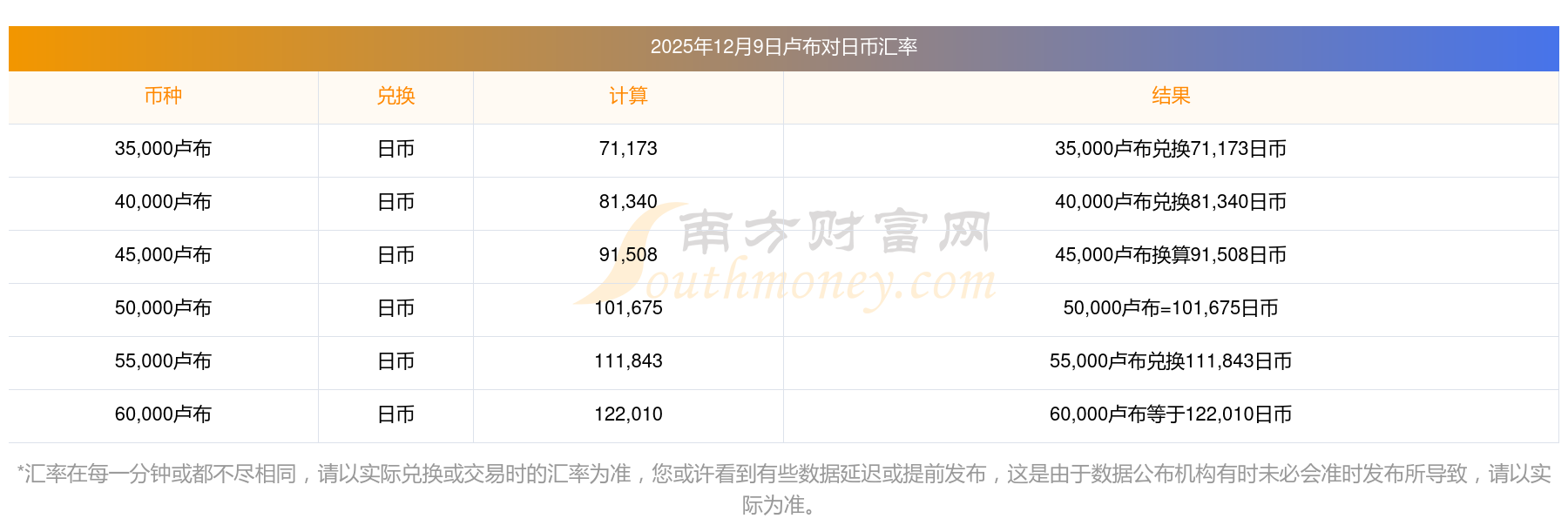 今日貨幣轉(zhuǎn)換,盧布對(duì)日元匯率多少?12月9日