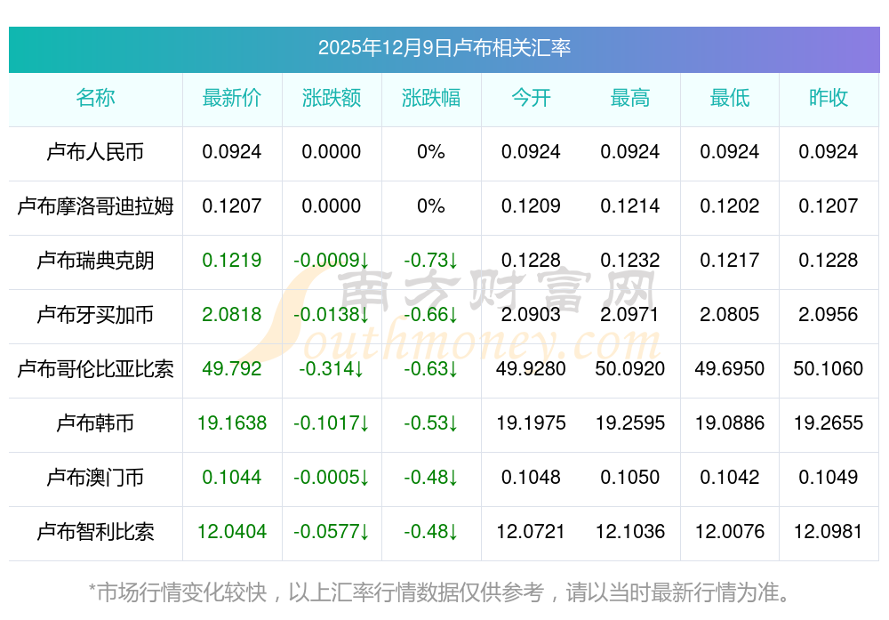 根據(jù)2025年12月9日匯率計(jì)算,RUB兌換JMD匯率最新價(jià)2.081800,今開價(jià)2.0903,昨收價(jià)2.0956,最高價(jià)2.0971,最低價(jià)2.0805。