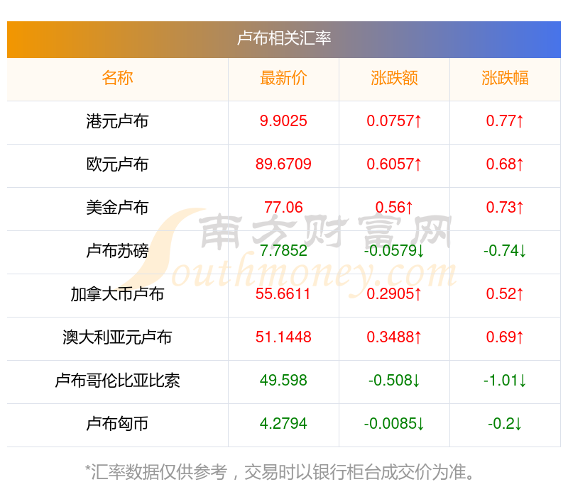 南方財(cái)富網(wǎng)為您提供盧布對阿根廷比索匯率最新價(jià)格詳情。