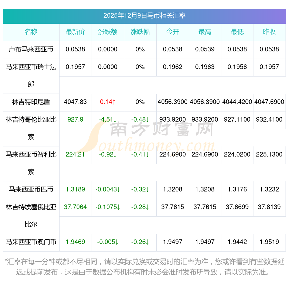 2025年12月9日馬幣相關(guān)匯率查詢(xún)