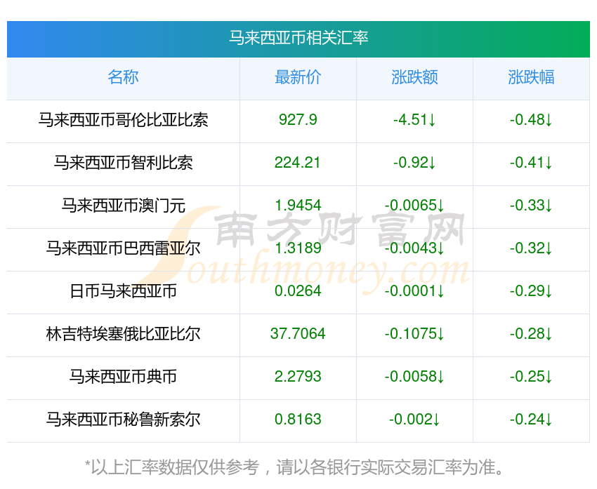 2025年12月9日馬來(lái)西亞幣相關(guān)匯率查詢(xún)
