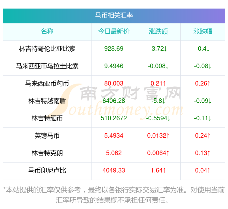 南方財(cái)富網(wǎng)為您提供馬幣對丹幣匯率最新價格詳情。