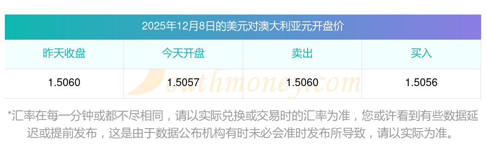 今天匯率行情:1美元兌澳幣匯率表(2025年12月8日)