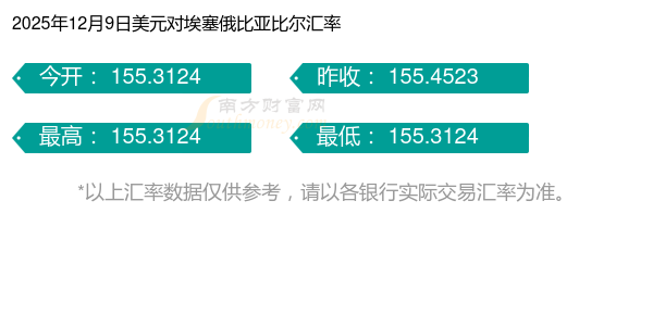 2025年12月9日美元兌換埃塞俄比亞比爾匯率是:155.3124