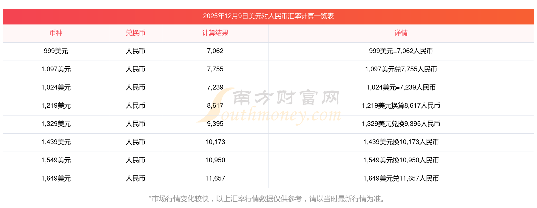 今日匯率調(diào)整_1032美元對(duì)人民幣匯率查詢2025-12-9