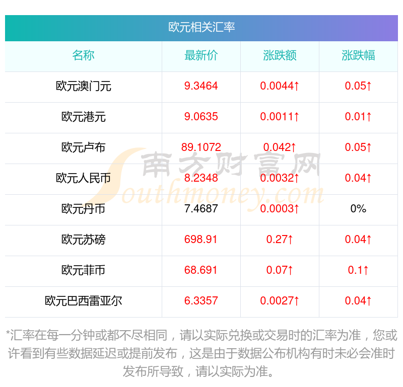 南方財富網(wǎng)為您提供歐元對人民幣匯率最新價格詳情。