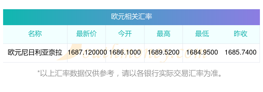 南方財(cái)富網(wǎng)為您提供歐元對(duì)尼日利亞奈拉匯率最新價(jià)格詳情。