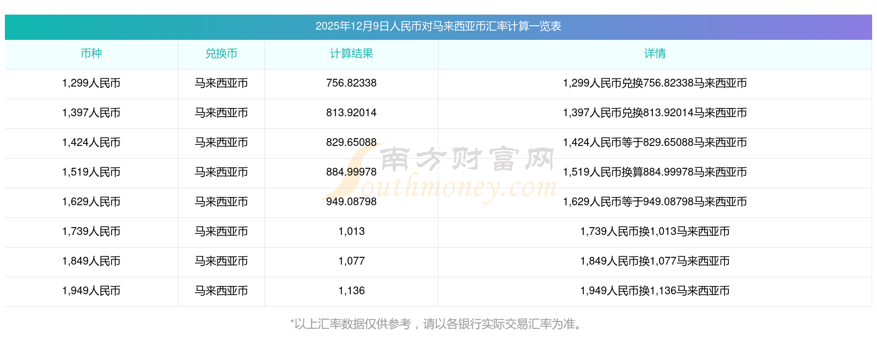 今日外匯人民幣匯率 人民幣對馬來西亞幣計算匯率是多少12月9日