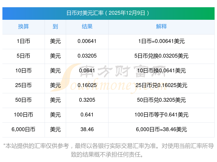 現(xiàn)在5900日元與美元的互換匯率是多少?2025年12月9日