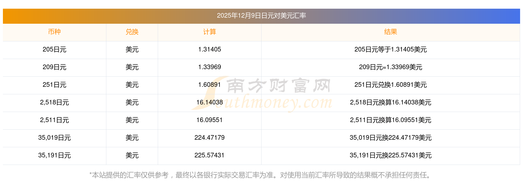 現(xiàn)在3650日元與美元的互換匯率是多少?2025年12月9日