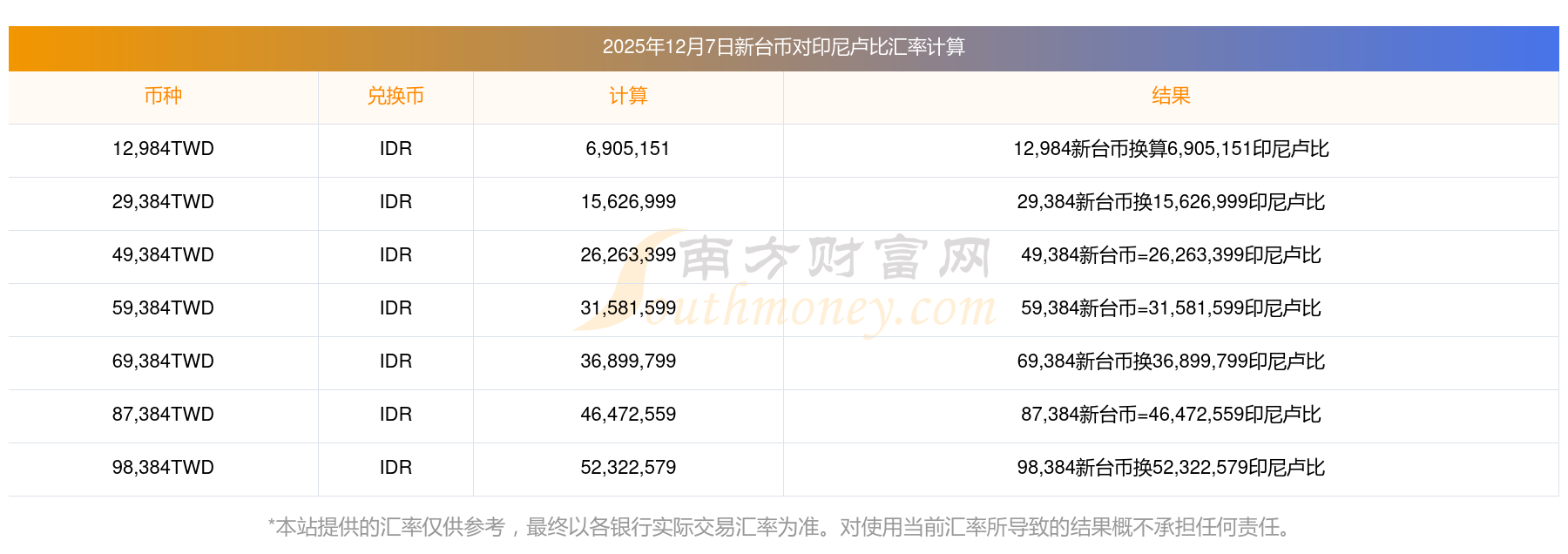 南方財(cái)富網(wǎng)為您提供新臺(tái)幣對(duì)印尼盧比匯率最新價(jià)格詳情。