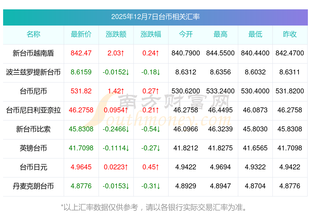 2025年12月7日臺(tái)幣相關(guān)匯率查詢