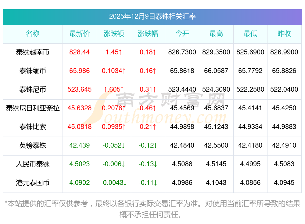 根據(jù)2025年12月9日匯率,泰銖兌換比索匯率最新45.081757,今開44.9898,昨收44.9883,最高45.1243,最低44.9334。