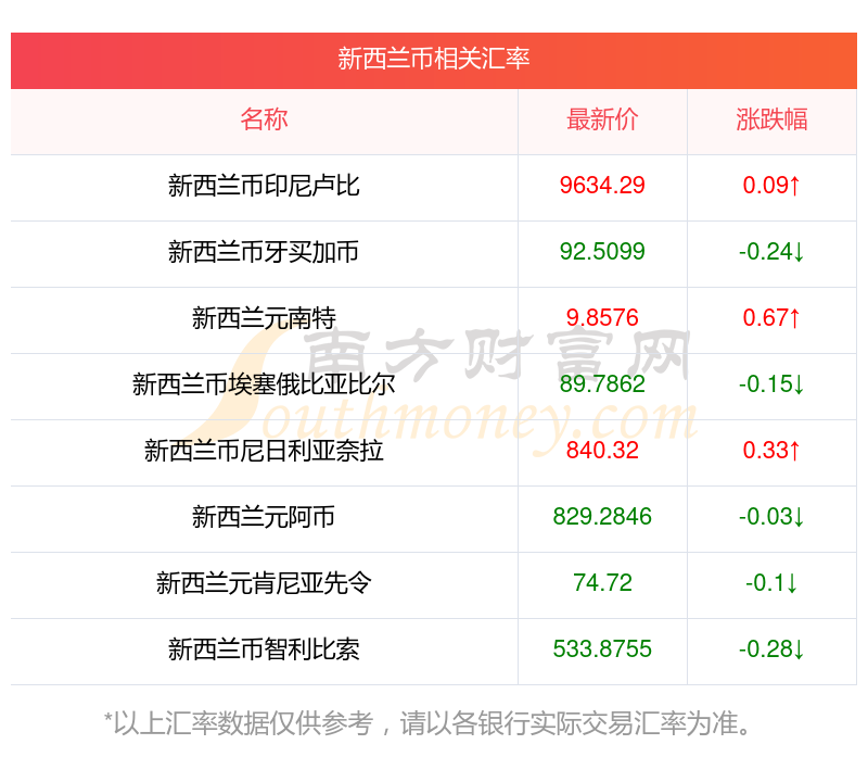 2025年12月9日新西蘭幣相關(guān)匯率查詢