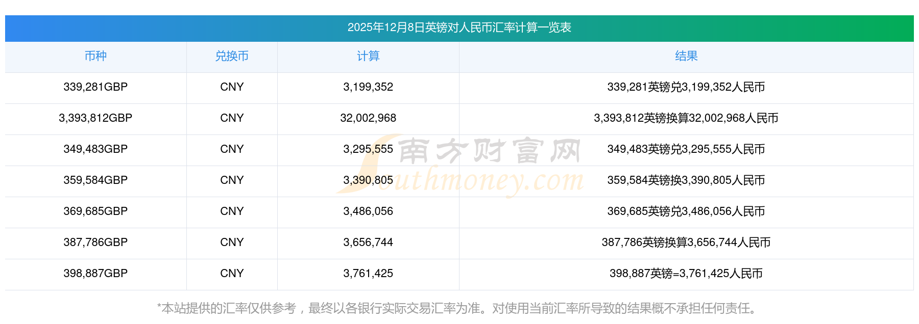 1英鎊對(duì)人民幣多少元?英鎊匯率中間價(jià)2025/12/08