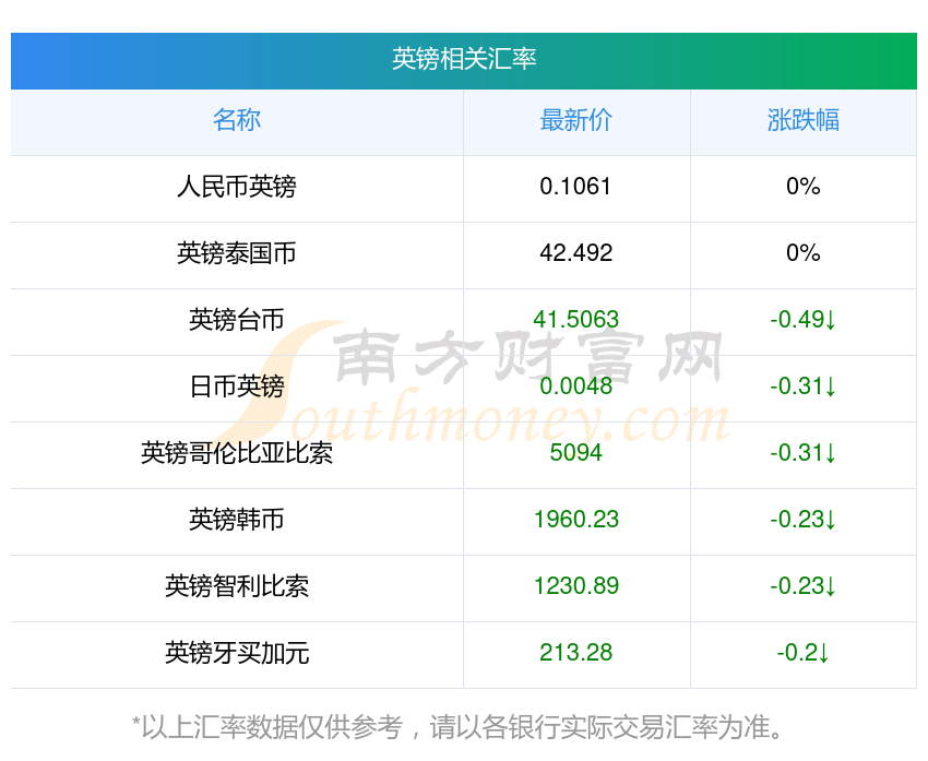 2025年12月9日英鎊相關(guān)匯率查詢