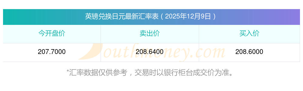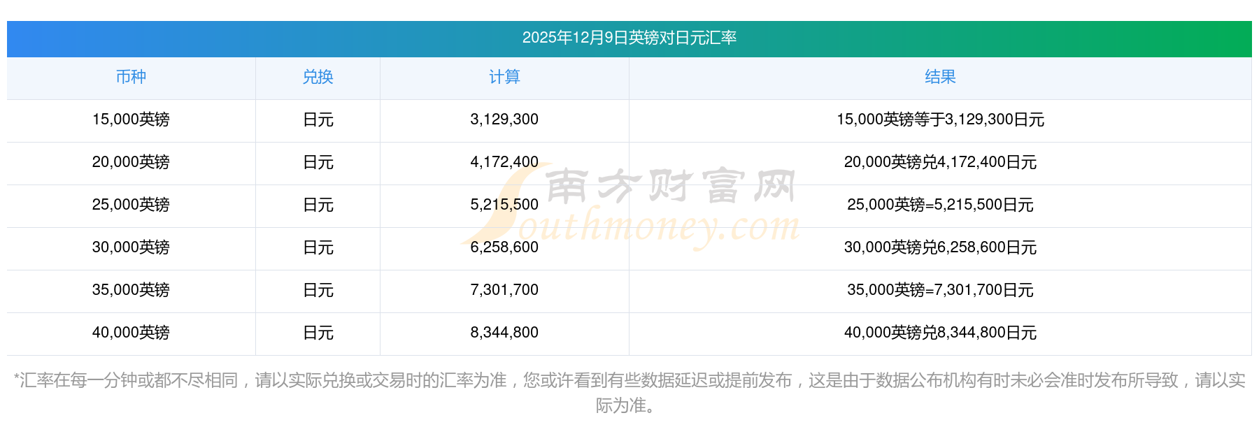 英鎊與日元匯率對(duì)比 133英鎊對(duì)日元開盤價(jià)多少?匯率又是多少?2025年12月9日