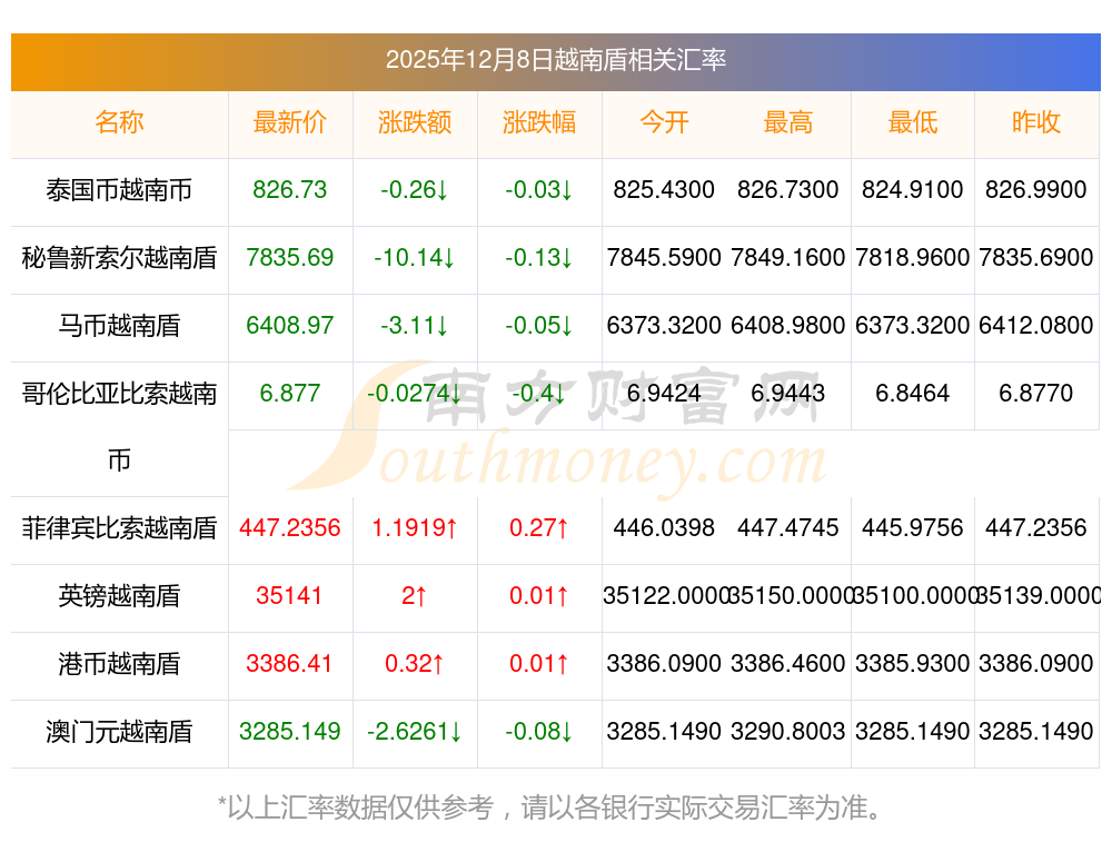 根據(jù)2025年12月8日匯率計算,VND兌換CAD匯率最新價0.000052,今開價0.0001,昨收價0.0001,最高價0.0001,最低價0.0001。