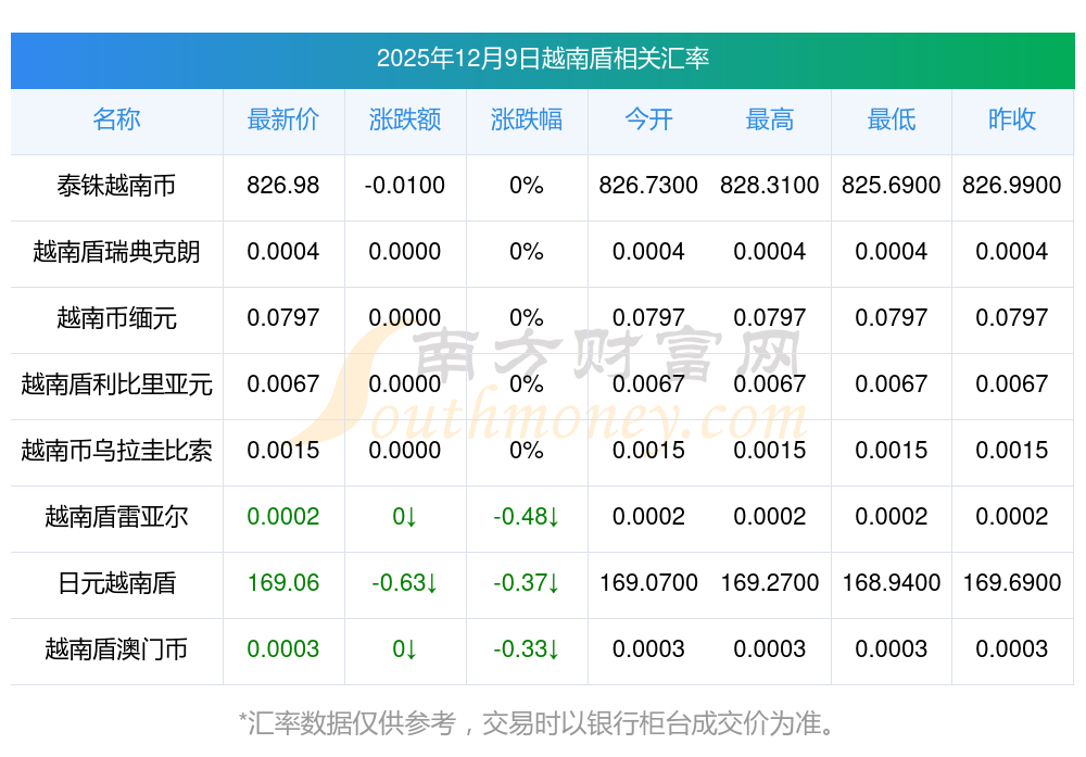 2025年12月9日越南盾相關(guān)匯率查詢(xún)