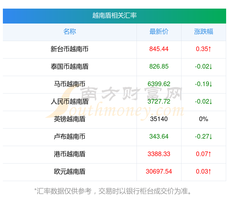 南方財富網(wǎng)為您提供越南盾對瑞士法郎匯率最新價格詳情。