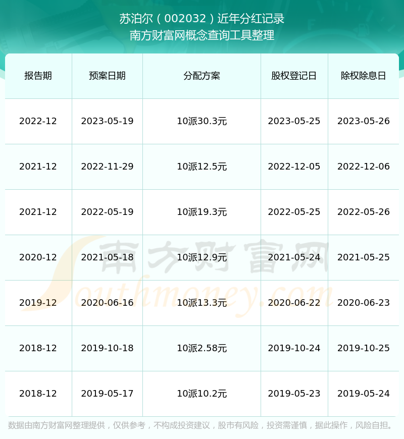 蘇泊爾最新一次公布的分紅方案為10派30.3元。本次權(quán)益分派股權(quán)登記日為2023年5月25日,除權(quán)除息日為2023年5月26日,派息日為2023年5月26日。