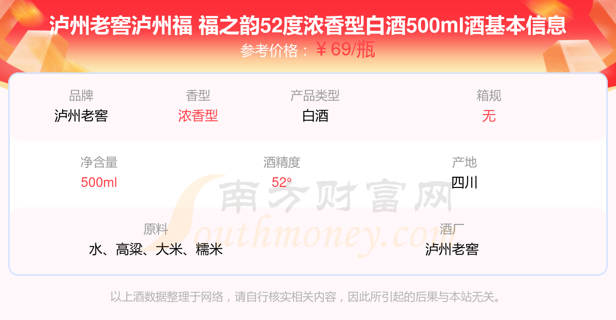 瀘州老窖瀘州福 福之韻52度濃香型白酒500ml基本信息