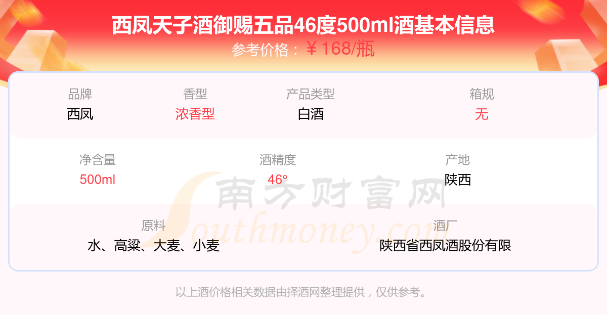 西鳳天子酒御賜五品46度500ml基本信息