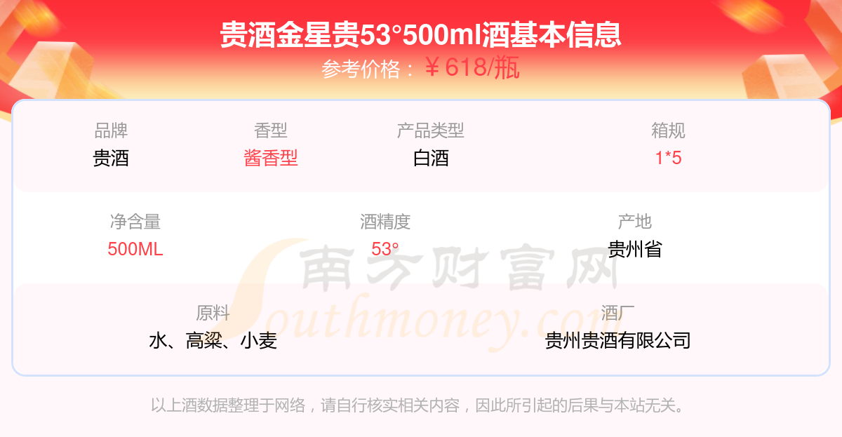 貴酒金星貴53°500ml基本信息