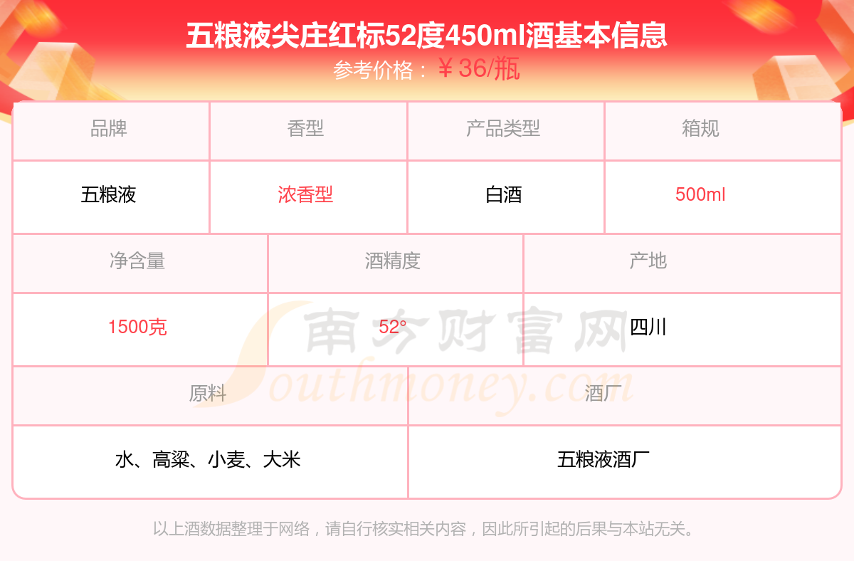 五糧液尖莊紅標(biāo)52度450ml基本信息