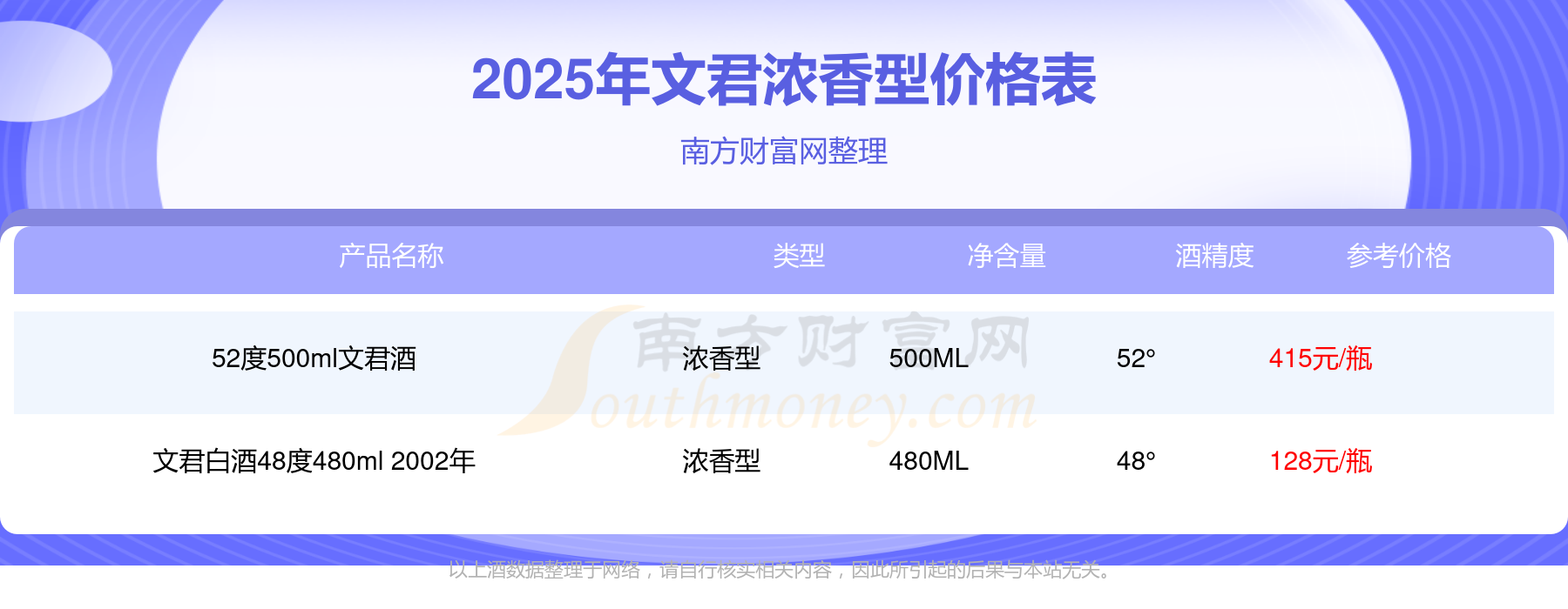 2025文君濃香型酒最新價格: