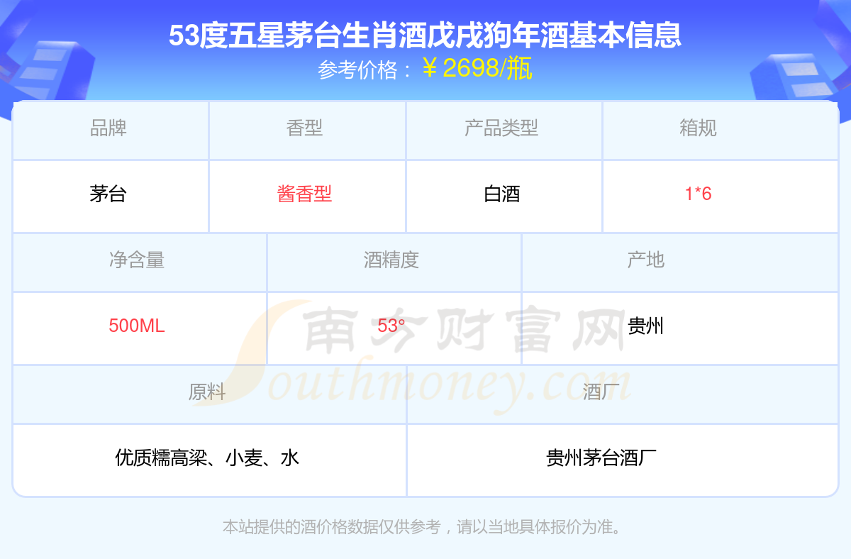 53度五星茅臺生肖酒戊戌狗年基本信息