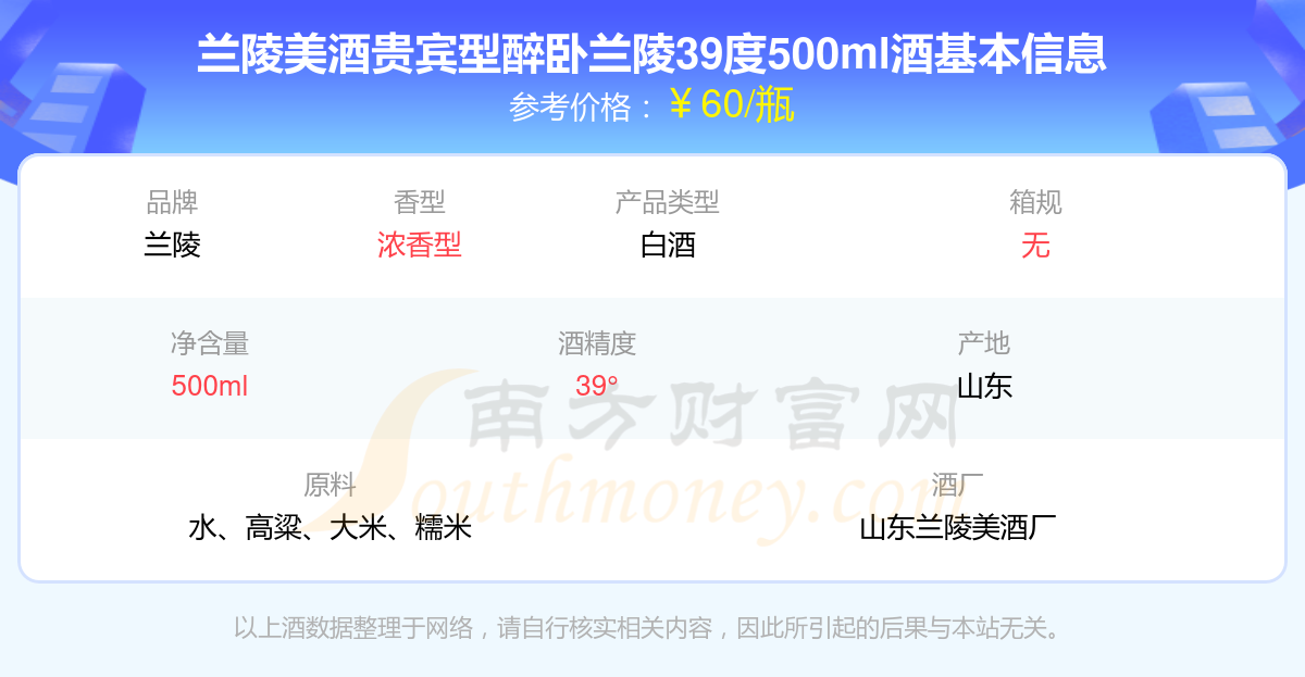 蘭陵美酒貴賓型醉臥蘭陵39度500ml基本信息