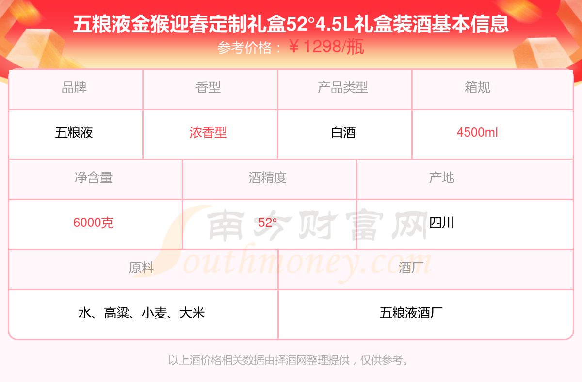 五糧液金猴迎春定制禮盒52°4.5L禮盒裝基本信息